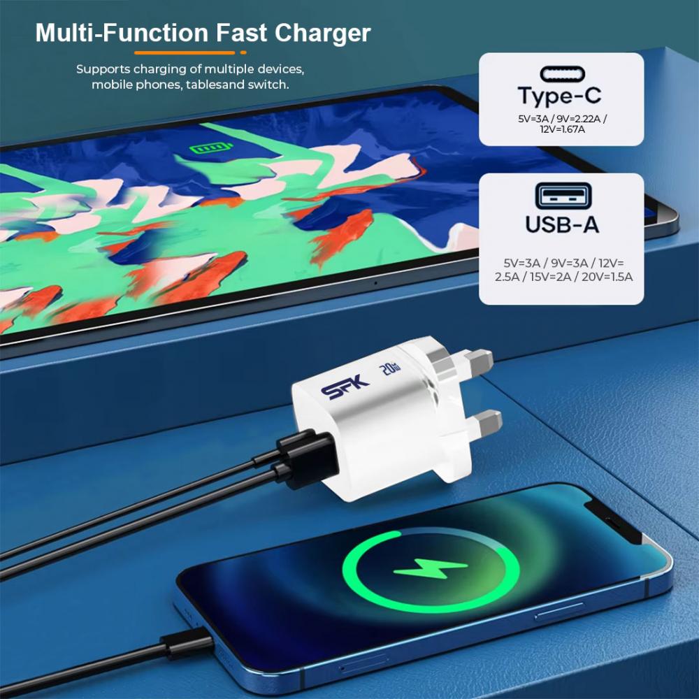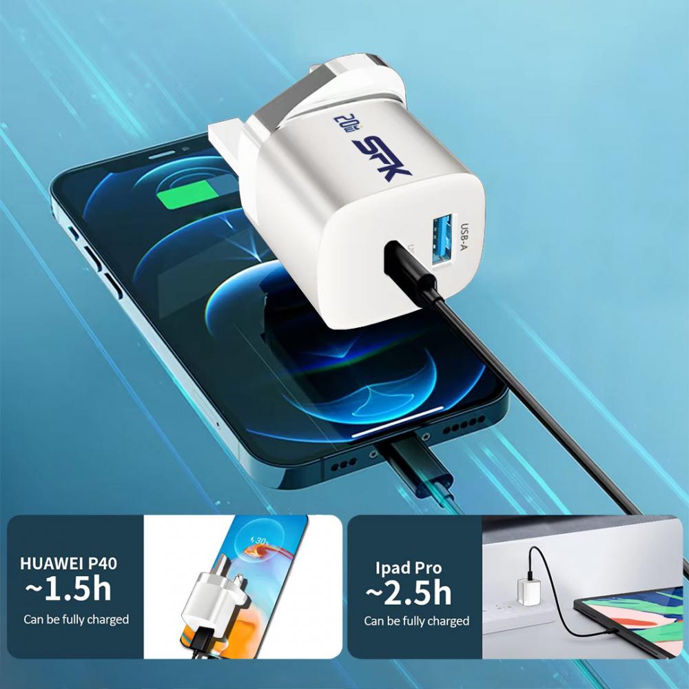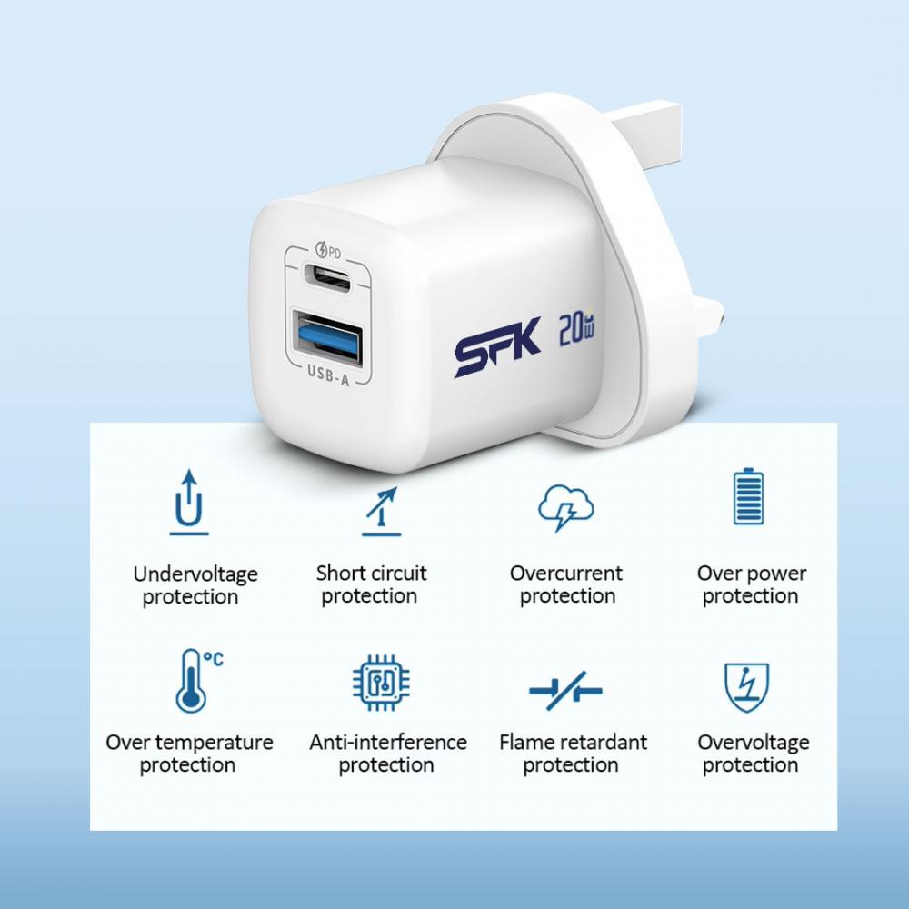 SFK USB C Fast charger plug is built-in multi safety protection to protect your devices from Short circuit/Overvoltage/Overheating and also it can auto-stopped when it's fully charged for your devices, Which can give you a security guarantee experience.