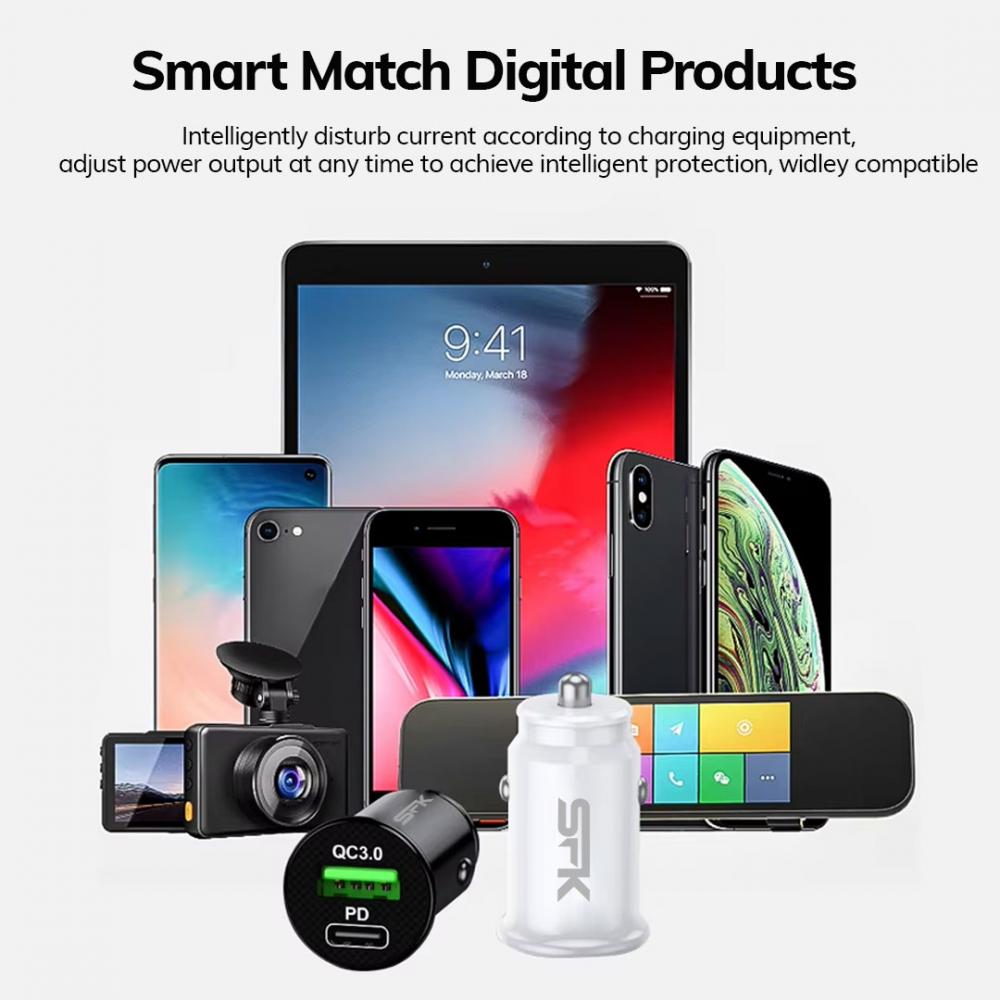 PD3.0 20W USB-C Car Charger charge your phone 0 to 50% in less them 35 minutes and additional QC3.0 Device charges your 2nd device with same speed at same time. It help you to charge your multiple devices fully while on the go