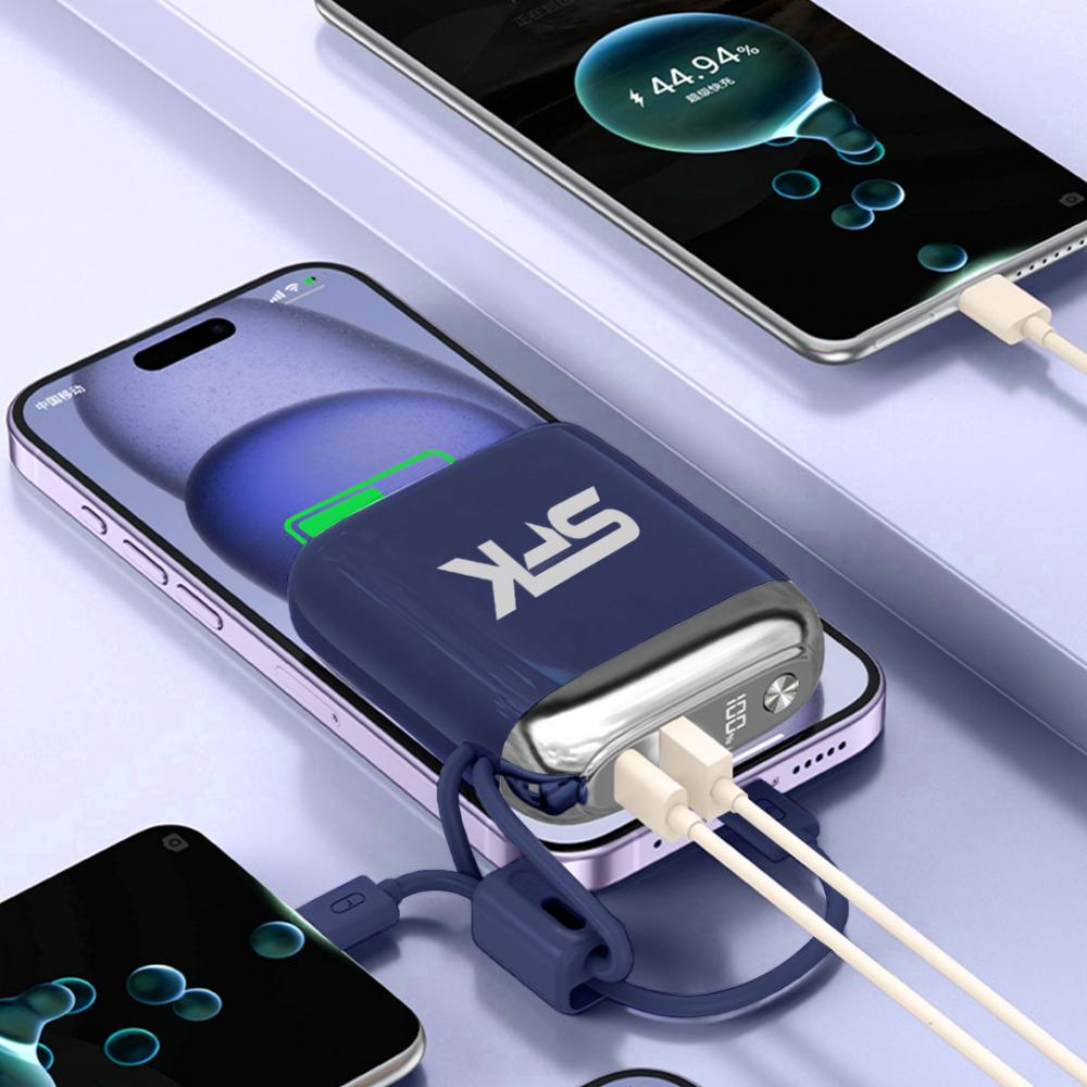 The power bank complies with the latest charging standards, the USB output supports fast charging up to 22.5W, the built-in Type-C cable supports 22.5W fast charging and the built-in cable (compatible with iPhone) supports 22.5W fast charging, which can charge the phone to 60% in 30 minutes.